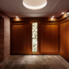 計画地は、鎌倉駅に近く緑豊かな山並みを背景とした良好な自然環境の中にある。建物の配置は、道路や隣地から出来るだけ後退し、圧迫感の軽減や景観等に配慮した。通り沿いのファサードは、結界性を明確に示す堅牢なデザインを施し、ハイグレードな印象を与えるよう心掛けた。特に南東角のファサードはこの建物の顔として、また地域のランドマークともなることを目指している。エントランスから各住戸玄関へと続くシークエンスは、水と緑で演出された中庭と一体となって繋がり、住む人が自然に囲まれた雰囲気を享受できるよう配慮している。当計画では、基本計画に加えファサード・パブリックスペースのデザイン提案及び監修を行っている。