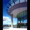 最上階はテナントゾーンとし、”飲食・アミューズメント”の集積空間を作り出し、 最上階外観はGMSフロアとは異なるガラスカーテンウォールの採用により”駅前の賑わい”を”明かり”というかたちで演出している。